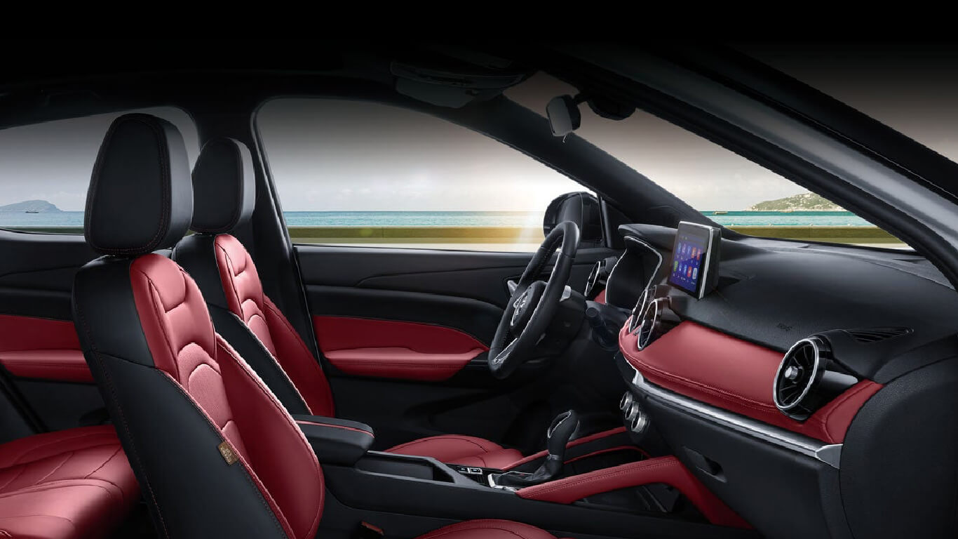 Unutra vas očekuje moderni kokpit s višefunkcionalnim volanom, kožnim sjedištima, te luksuznim nijansama: Bordeaux crvena ili Nissan crna.